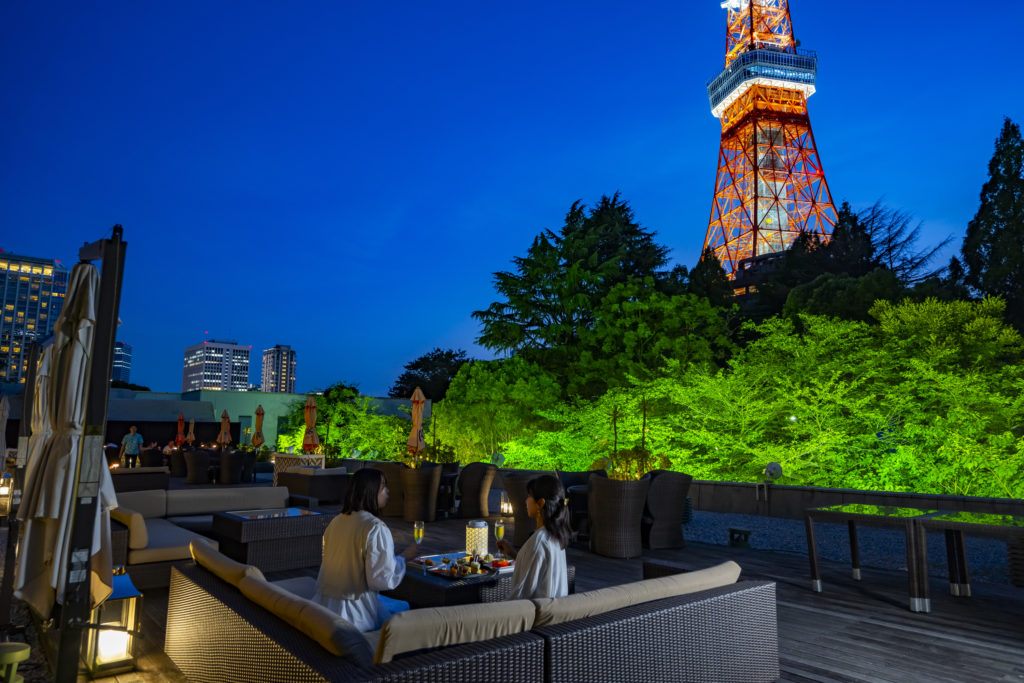 東京タワーを間近に望むテラス席を確約。